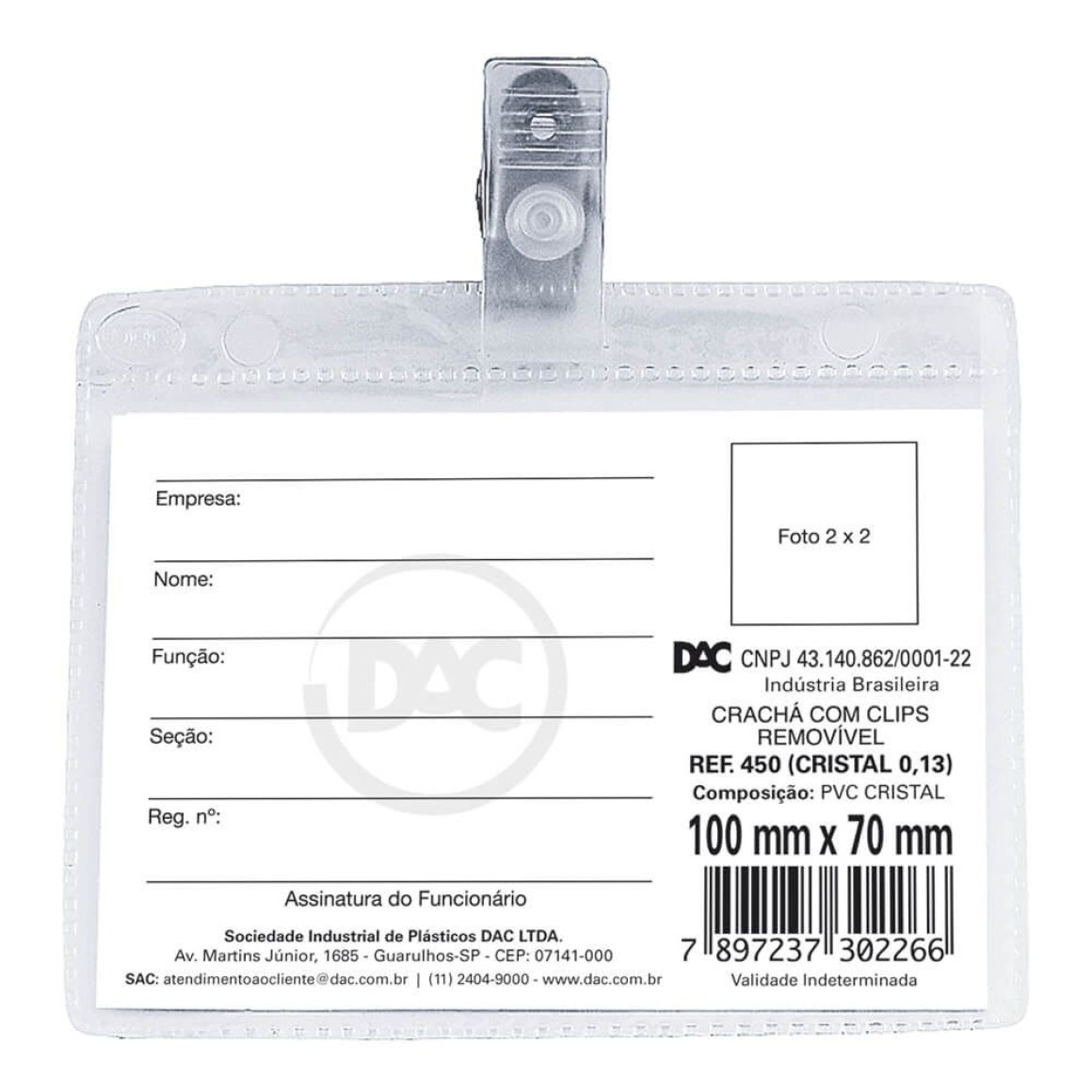 Cracha Sem Presilha Horizontal 70x100mm Ref 1045 DAC